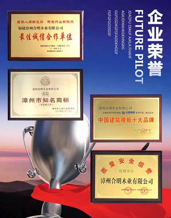 合明模板越做越大,在得到關(guān)注的同時(shí)也得到了各界的肯定。客戶信任合明模板,不遠(yuǎn)千里到合明洽商。中國(guó)企業(yè)網(wǎng)、百年建筑網(wǎng)、中國(guó)木業(yè)信息網(wǎng)、網(wǎng)易、搜狐等各大媒體對(duì)合明木業(yè)進(jìn)行了報(bào)道,贊賞合明進(jìn)取的企業(yè)精神。不僅如此,合明還獲得了“誠(chéng)信經(jīng)營(yíng)倡導(dǎo)單位”、“質(zhì)量安全信譽(yù)聯(lián)盟單位”等近十項(xiàng)榮譽(yù)。